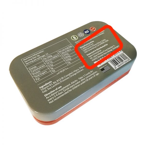 CANDY Bの製造メーカー「California Pure社」また、販売元「Apex Enterprise社」と